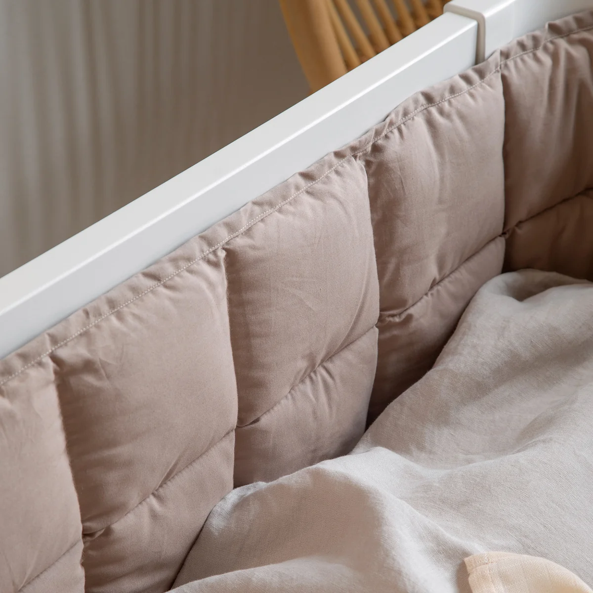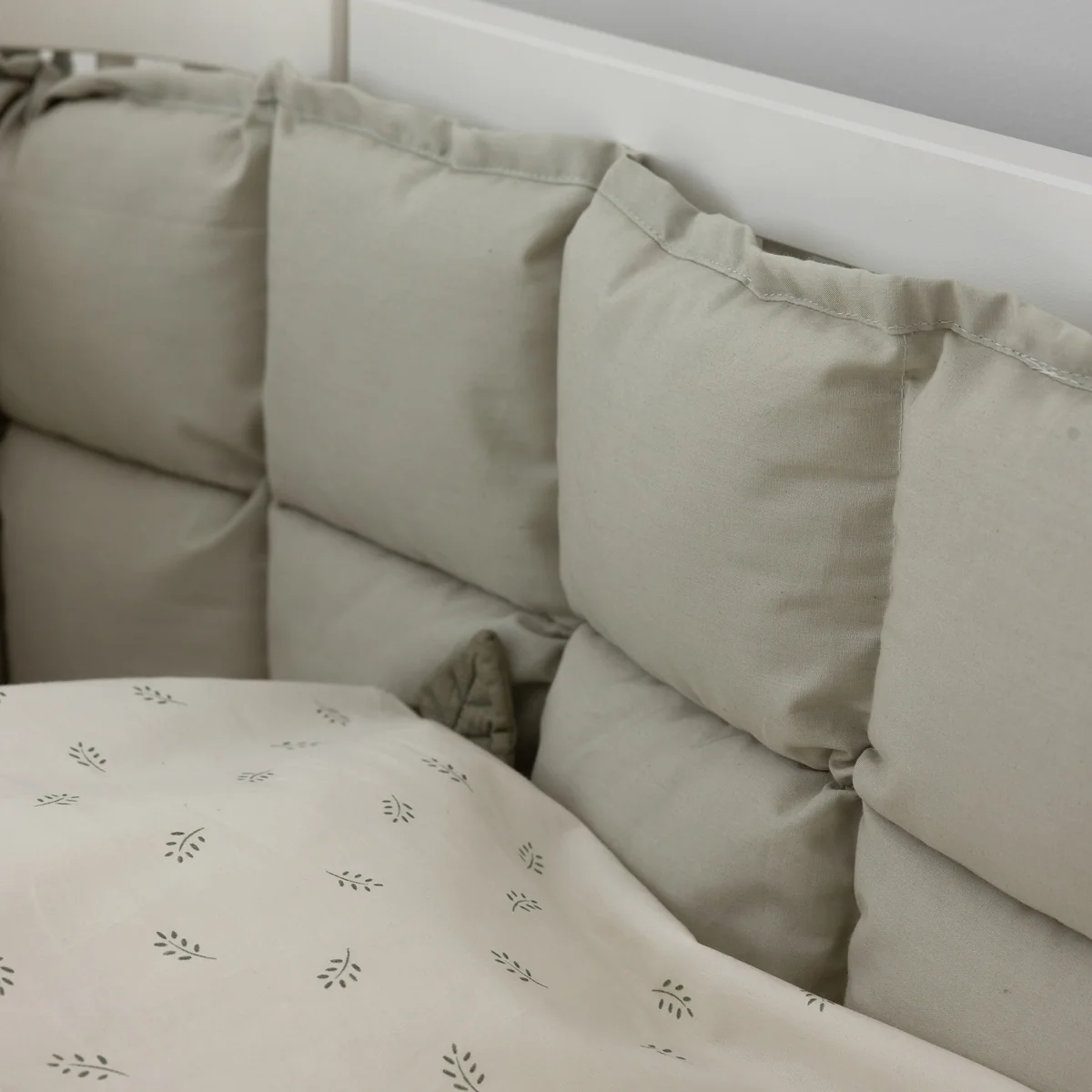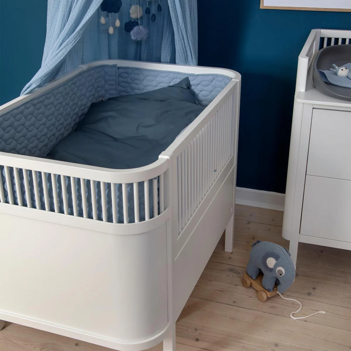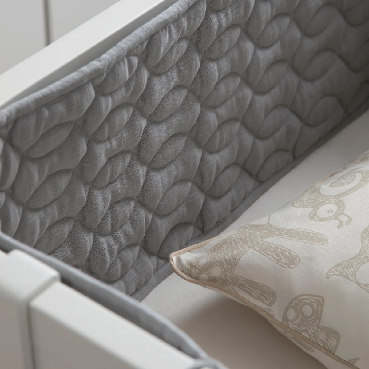 Die 360 cm lange Polsterung eignet sich perfekt für das Sebra Baby & Junior Bett, kann jedoch auch in anderen Betten verwendet werden. Zur Reinigung kann der Bezug durch den Reißverschluss leicht abgenommen und bei 30°C gewaschen werden.