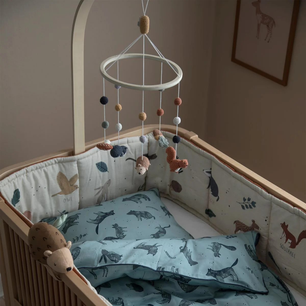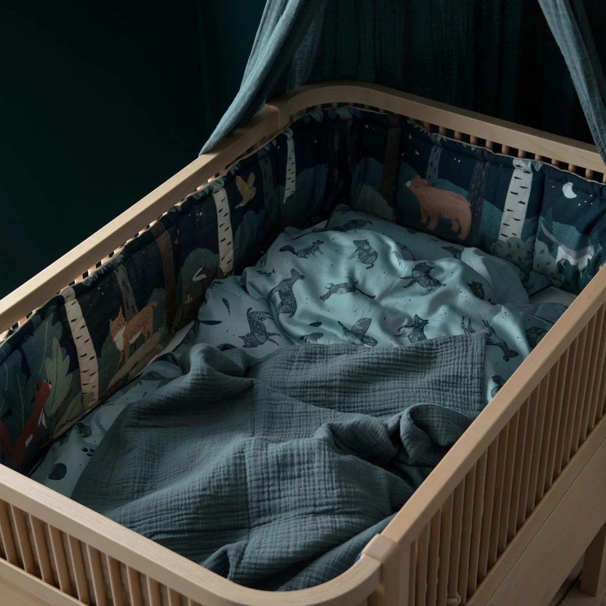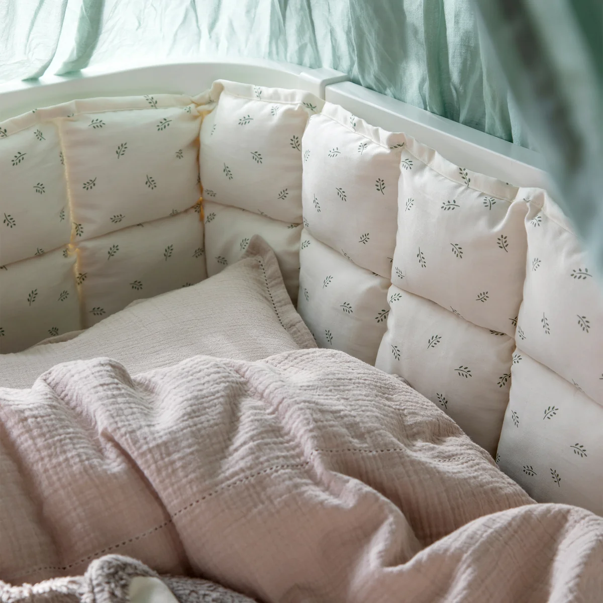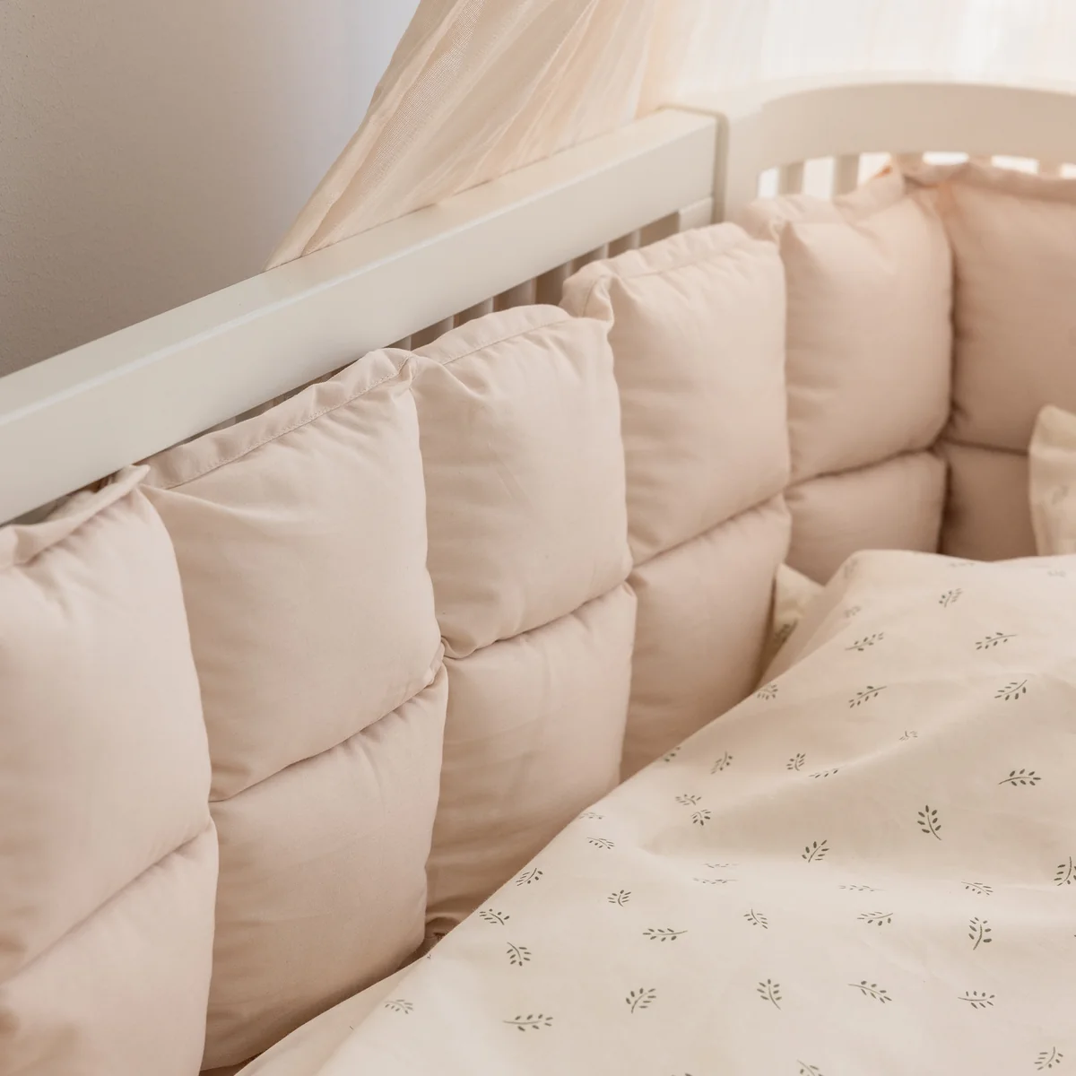 Das Baby-Bettnestchen von Sebra ist eine weiche Polsterung für Babybetten, die für eine angenehme Nacht und süße Träume bei den Kleinen sorgt. Mit einer festen Schaumstofffüllung werden Stöße an den Bettstäben hervorragend verhindert, sodass kleine nächtliche Turbulenzen sicher abgefangen werden.
