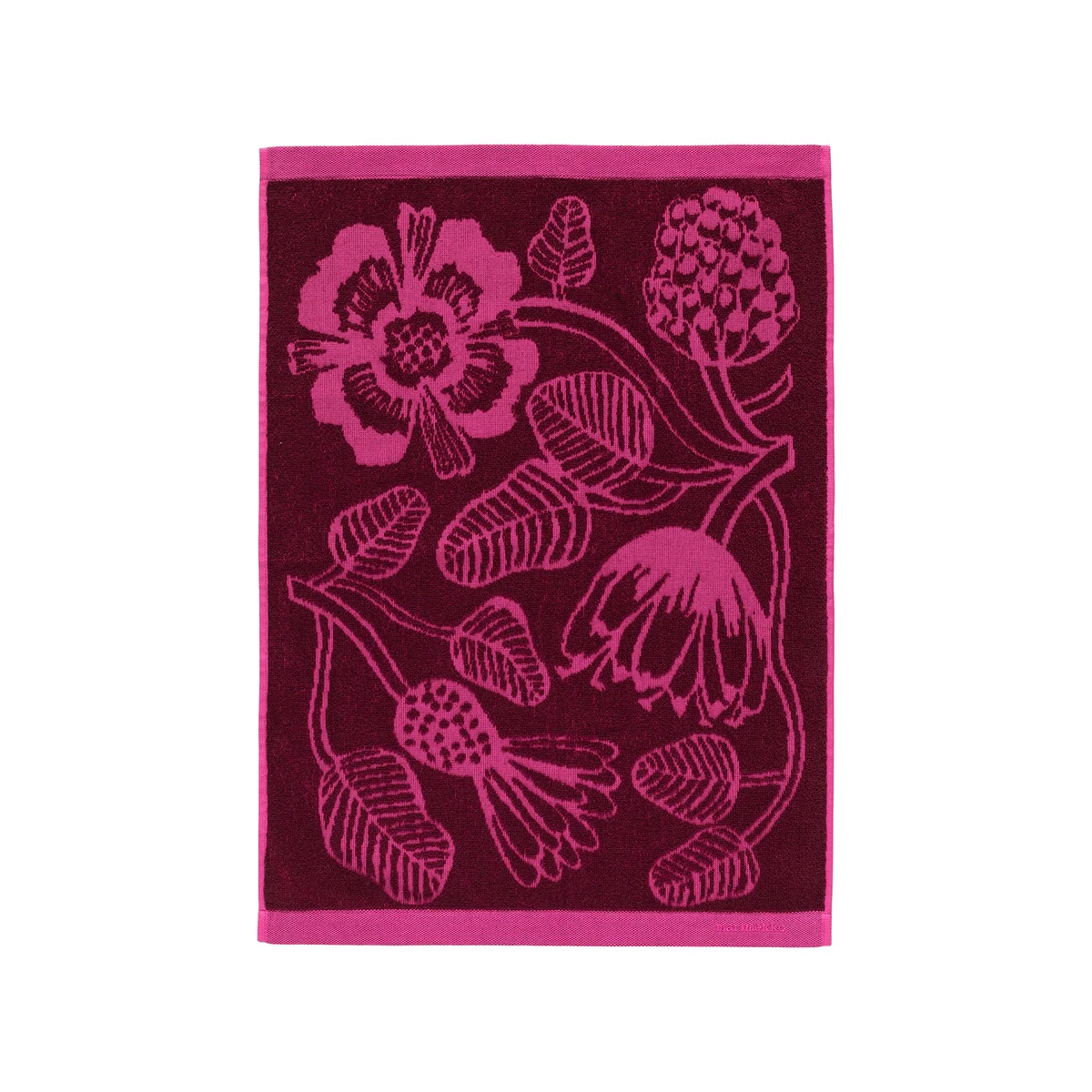 Das Tiara Handtuch-Set von Marimekko vereint funktionale Qualität mit einem ausdrucksstarken, floralen Design. Das Set besteht aus einem Badetuch (70 × 150 cm) und einem Gästetuch (50 × 70 cm), jeweils gefertigt aus 100 % Bio-Baumwollfrottee.