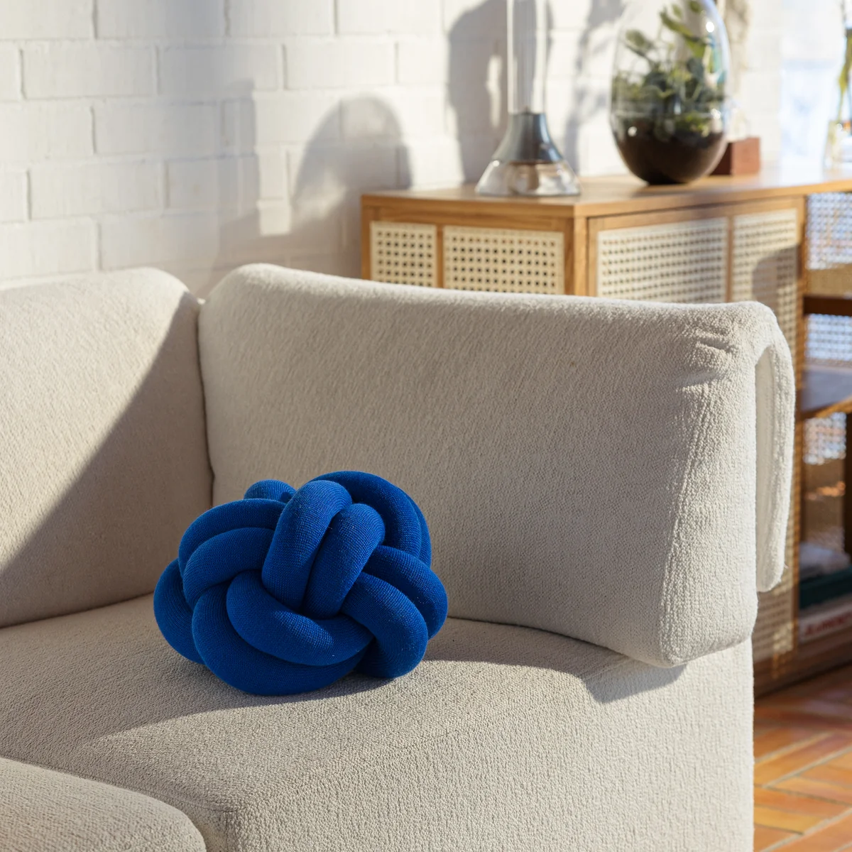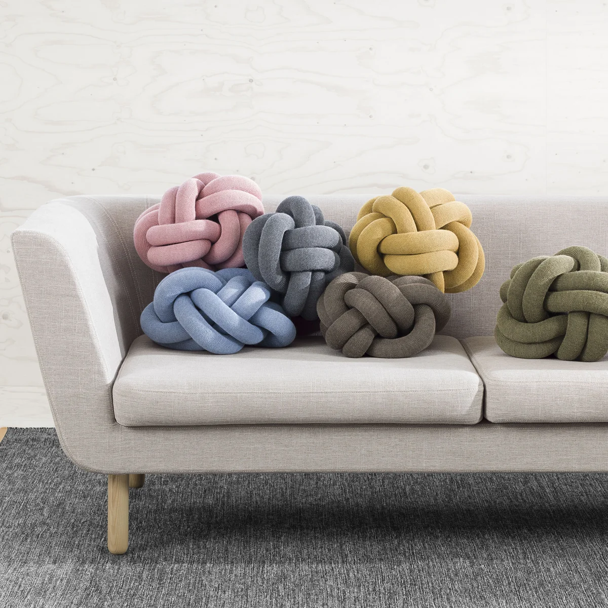 Das Knot Kissen von Design House Stockholm bleibt mit seiner ungewöhnlichen Erscheinung in Erinnerung und zaubert jedem Betrachter ein Lächeln ins Gesicht. Die Isländische Designerin Ragnheiður Ösp Sigurðardóttir war schon immer an außergewöhnlichen Designs interessiert. Die Idee zum Kissen entstammt dem Entwurf eines Teddybären, dessen extrem lange Beine sich versehentlich verknoten haben. Zudem betont Ragnheiður Ösp Sigurðardóttir, dass sie früher bei den Pfadfindern war und damit schon immer gut im Knoten gewesen sei.