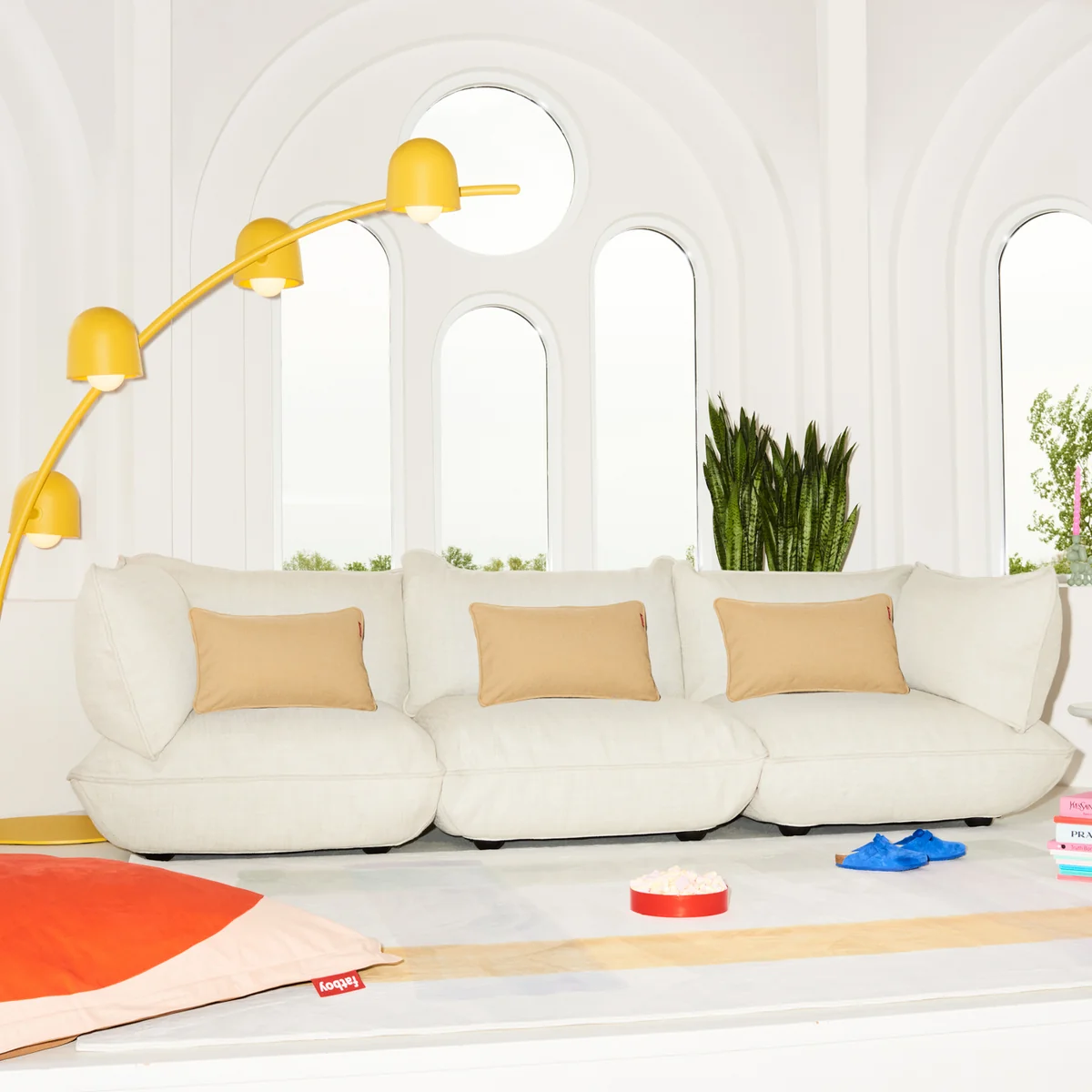 Die Sofakissen vereinen eine straffe Oberfläche mit einer weichen und angenehmen Haptik. Hergestellt aus 82% Polyester und 18% Acryl, verfügt das Kissen über eine Füllung aus gehacktem Schaumstoff. Die Sumoreihe beschreibt ein zirkulares System, das an die individuellen Bedürfnisse angepasst werden kann. Mit einer langen Lebensdauer, können die einzelnen Teile, nach Wunsch, ausgetauscht werden.
