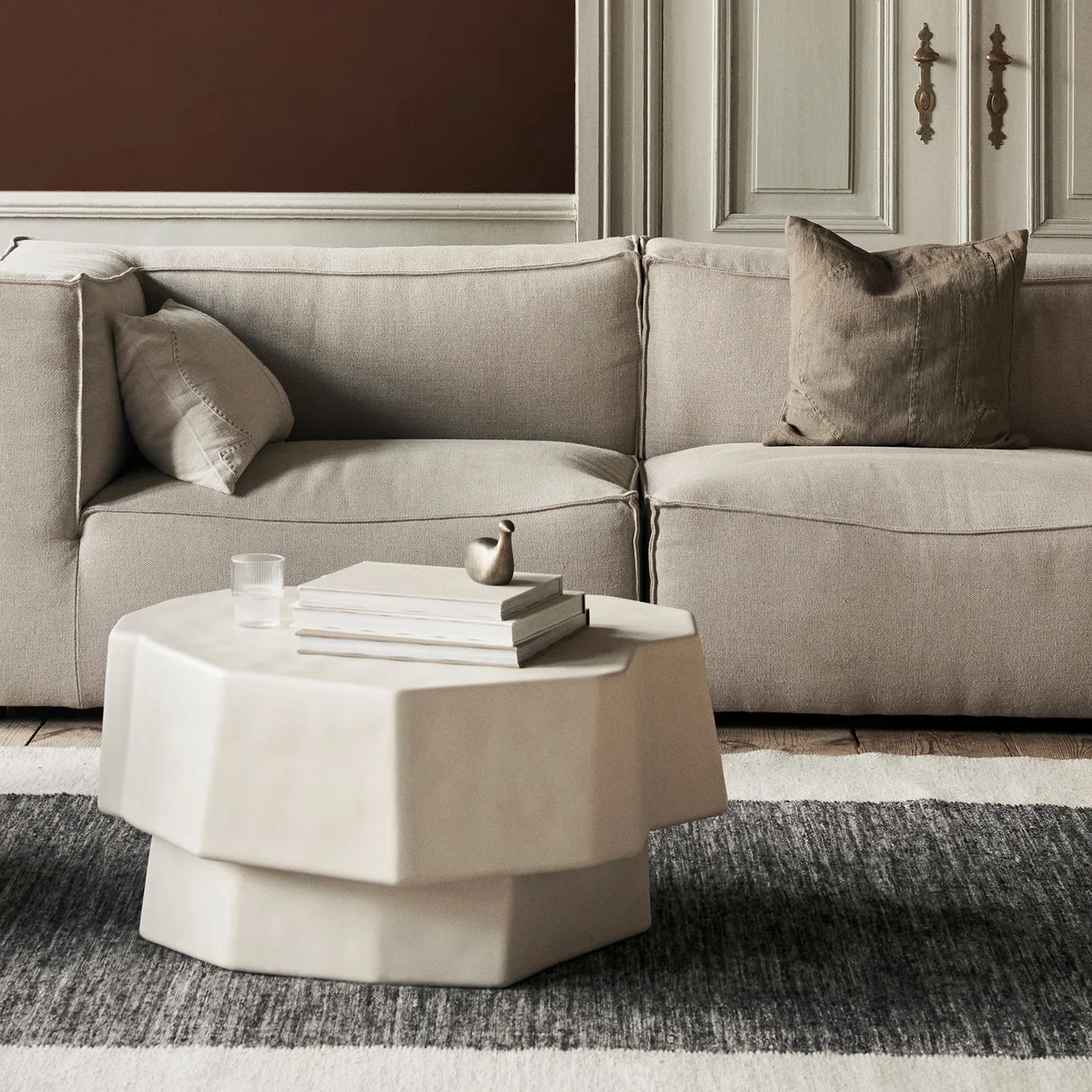 Das Darn Kissen von Ferm Living mit seinem Bezug aus Baumwolle und Leinen ist eine wahre Hommage an die Verschmelzung von Naturmaterialien und künstlerischem Design. Dieses Kissen verkörpert die Symbiose von Funktionalität und Ästhetik auf höchstem Niveau. Der Mix aus Baumwolle und Leinen verleiht dem Bezug eine luxuriöse Textur und sorgt gleichzeitig für Langlebigkeit und Pflegeleichtigkeit. Das Darn Kissen besticht durch sein auffälliges handgestricktes Muster, inspiriert von traditioneller Strickkunst, und fügt jedem Raum eine besondere Note hinzu. Seine grobe Textur und die charmante Unregelmäßigkeit im Strickmuster verleihen Ihrem Interieur eine rustikale Eleganz, die perfekt zu verschiedenen Einrichtungsstilen passt. Egal, ob Sie es auf Ihrer Couch, Ihrem Lieblingssessel oder Ihrem Bett platzieren, das Darn Kissen mit Baumwolle-Leinen-Bezug wird zum Blickfang und lädt zum Entspannen und Kuscheln ein. Es ist nicht nur ein dekoratives Element, sondern auch ein Stück zeitloser Handwerkskunst, das Ihr Zuhause mit Charakter und Behaglichkeit erfüllt. Mit dem Darn Kissen von Ferm Living können Sie die Schönheit des Handgemachten und die Vielfalt natürlicher Materialien in Ihr Interieur integrieren und ein Gefühl von Wärme und Authentizität schaffen.