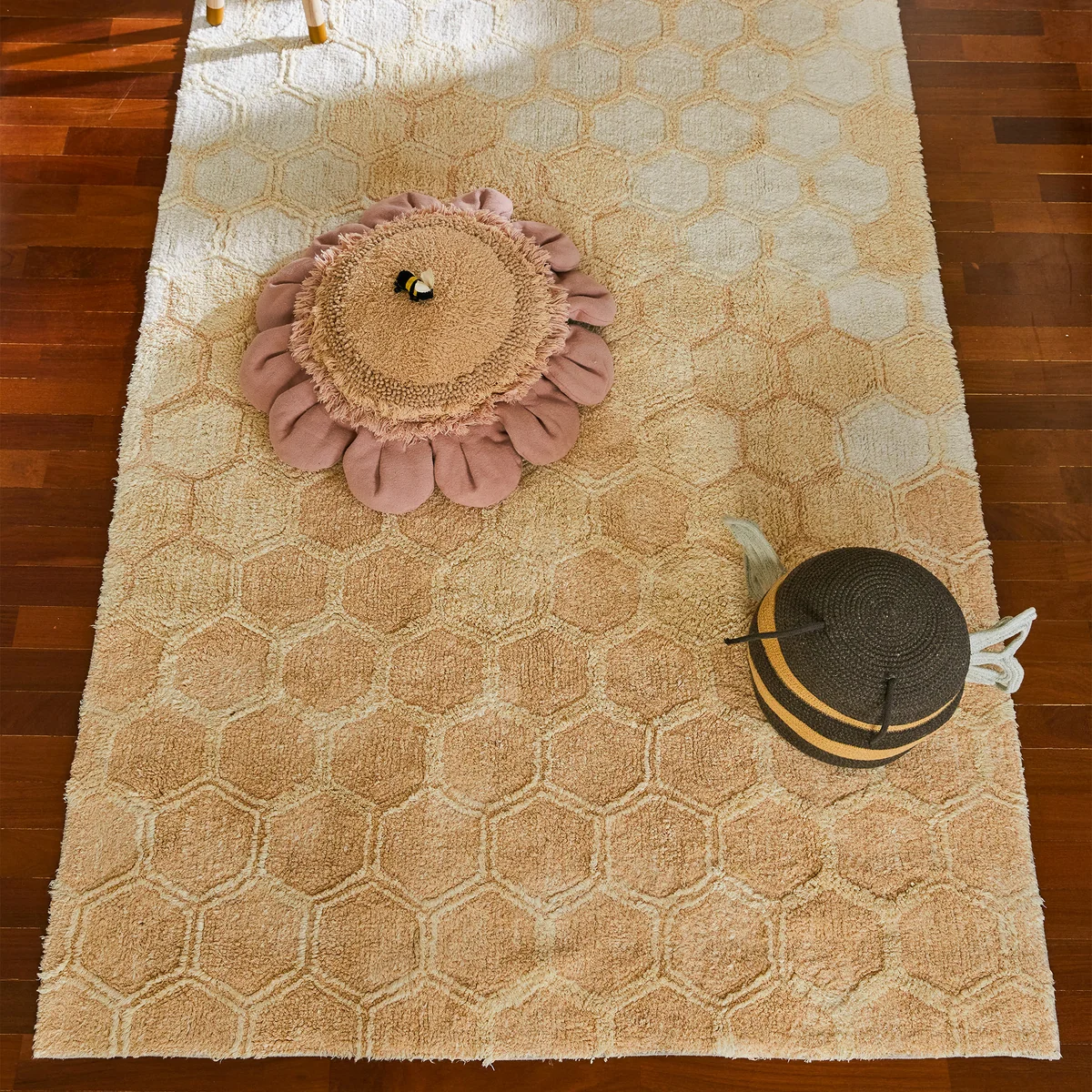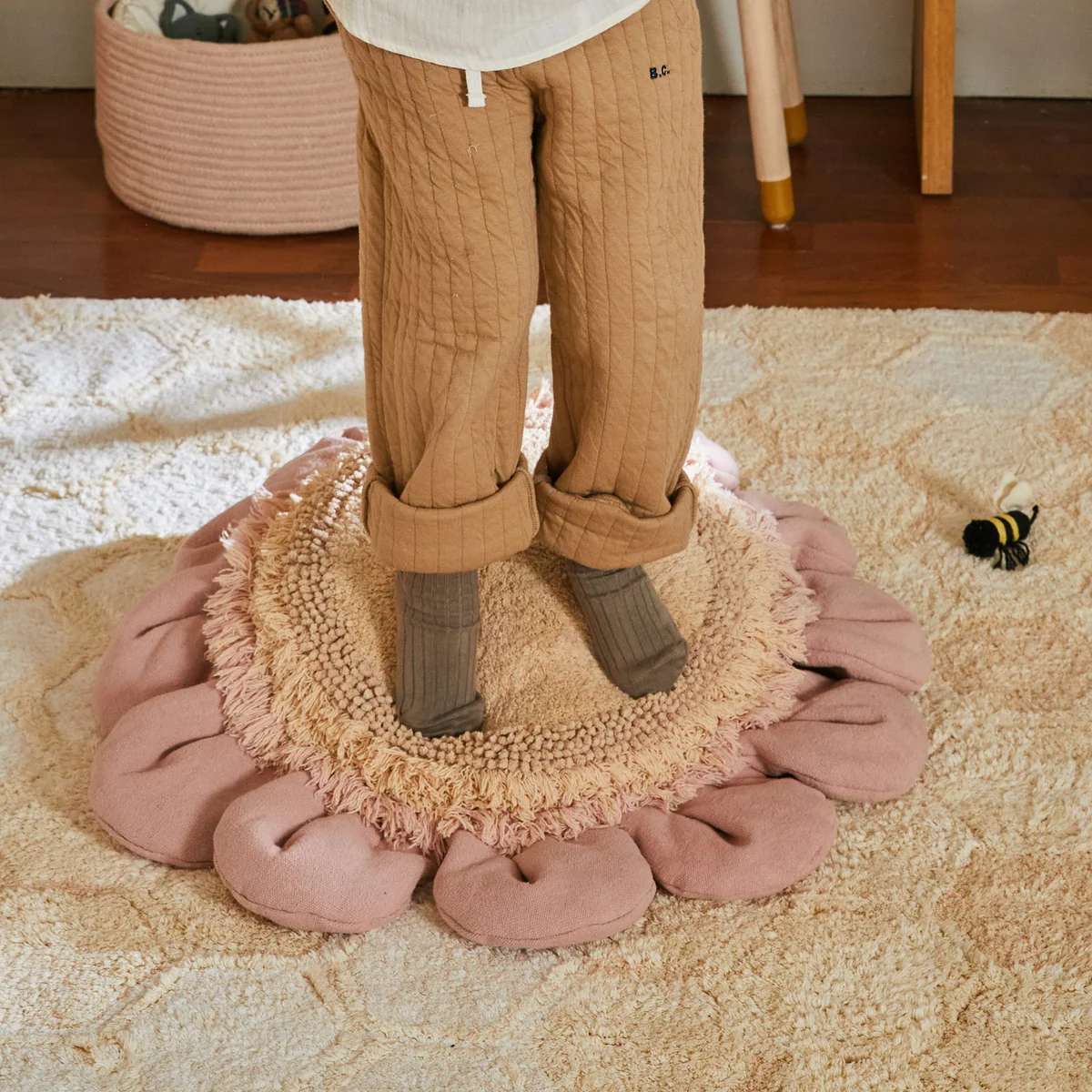 Das Pink Daisy Bodenkissen von Lorena Canals ist nicht nur ein stilvolles Accessoire, sondern auch eine bequeme Sitzgelegenheit, die die Räume aufhellt.
