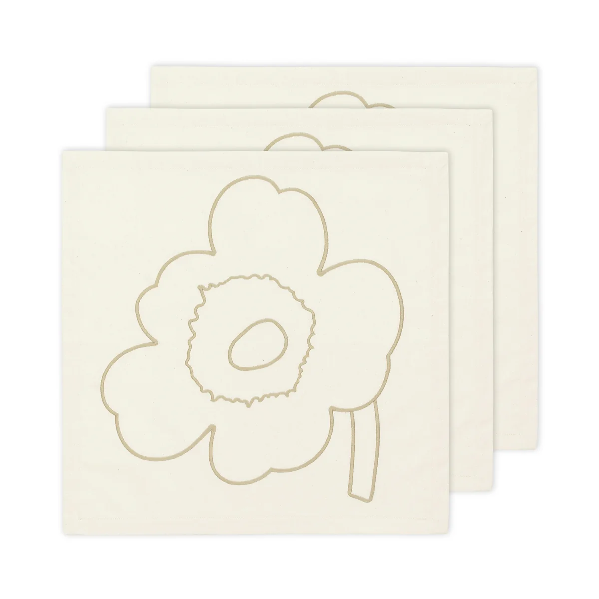 Marimekko - Piirto Unikko Satin Servietten, 50 x 100 cm, off-white / straw (3er-Set) (60th Anniversary Collection)