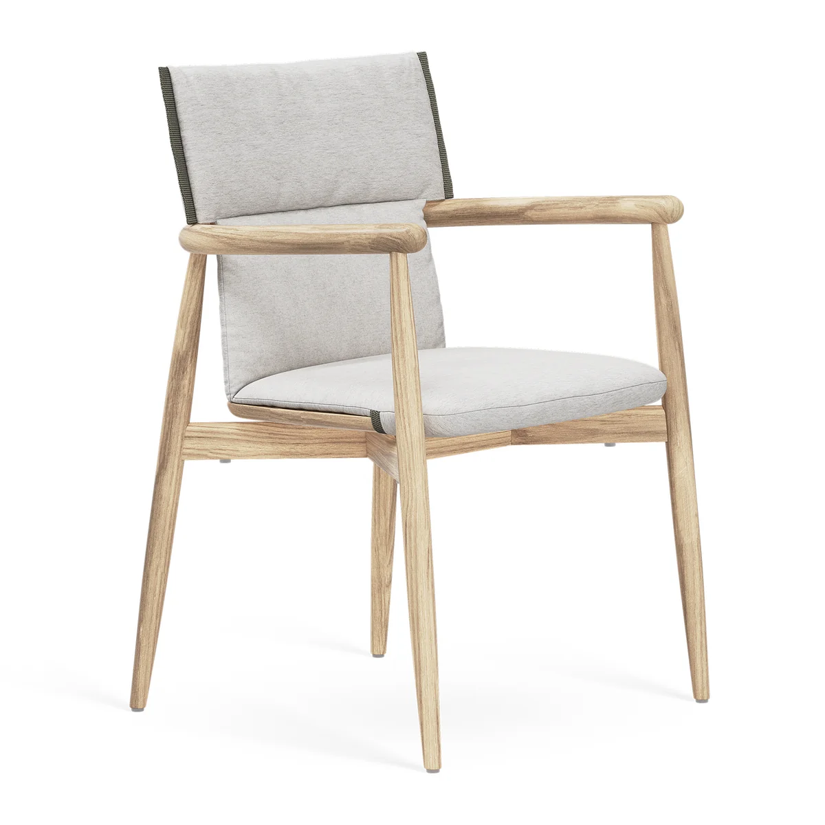 Die Embrace Auflage für Gartenarmlehnstuhl von Carl Hansen. Seit 2015 ist das österreichische Design-Trio EOOS Teil der Kollektion von Carl Hansen & Søn. Die Embrace-Serie, die ursprünglich Tische, Stühle, Loungemöbel und Sofas umfasste, war ein bedeutender Vertreter ihrer Zusammenarbeit. Jetzt wird diese Partnerschaft auf die Embrace Outdoor-Serie ausgeweitet, die sich von der bestehenden Embrace-Serie inspirieren lässt, welche die Schönheit perfekter Unvollkommenheit durch sorgfältige Tischlerei und lässige Polsterung betont.