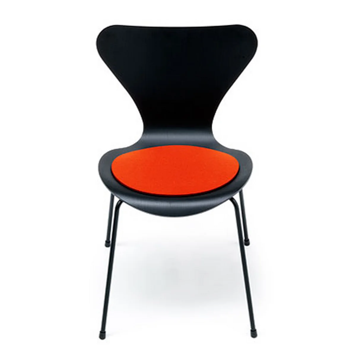 Die Sitzauflage für das Fritz-Hansen-Vorzeigeobjekt ist daher natürlich auch aus antirutsch-beschichtetem Filz (AR) "made in Germany" gefertigt. Das angenehme Material sorgt durch seine Wärme für zusätzliches Sitzvergnügen und im Gegensatz zu sonst üblichen Sitzkissen entsteht auf dem flachen Filz kein Gefühl von "Prinzessin auf der Erbse". Darüber hinaus hält sich die unaufdringliche Auflage optisch zurück und erhält so den unzweifelhaft einmaligen Ausdruck des Serie 7 Stuhls von Arne Jacobsen.