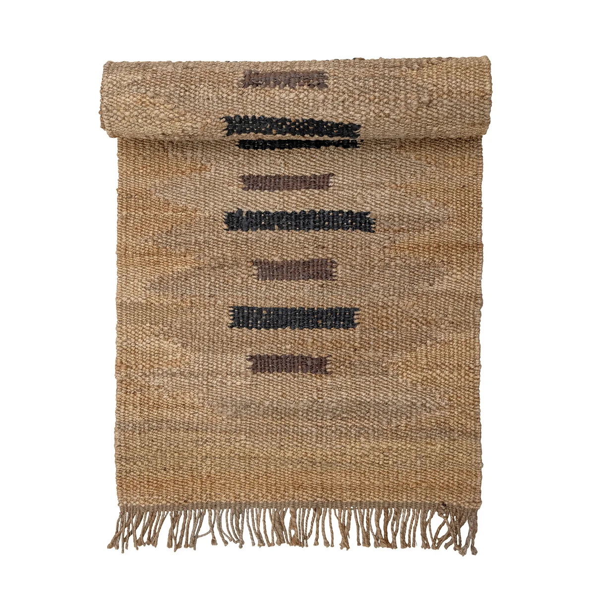 Der Vilde Teppich aus der Creative Collection ist aus Jute mit Lederdetails gefertigt und verleiht jeder Einrichtung einen natürlichen Look. Das schlichte, jedoch kreative Design mit den schwarzen und braunen Lederdetails nimmt sich in jedem Raum gut aus.