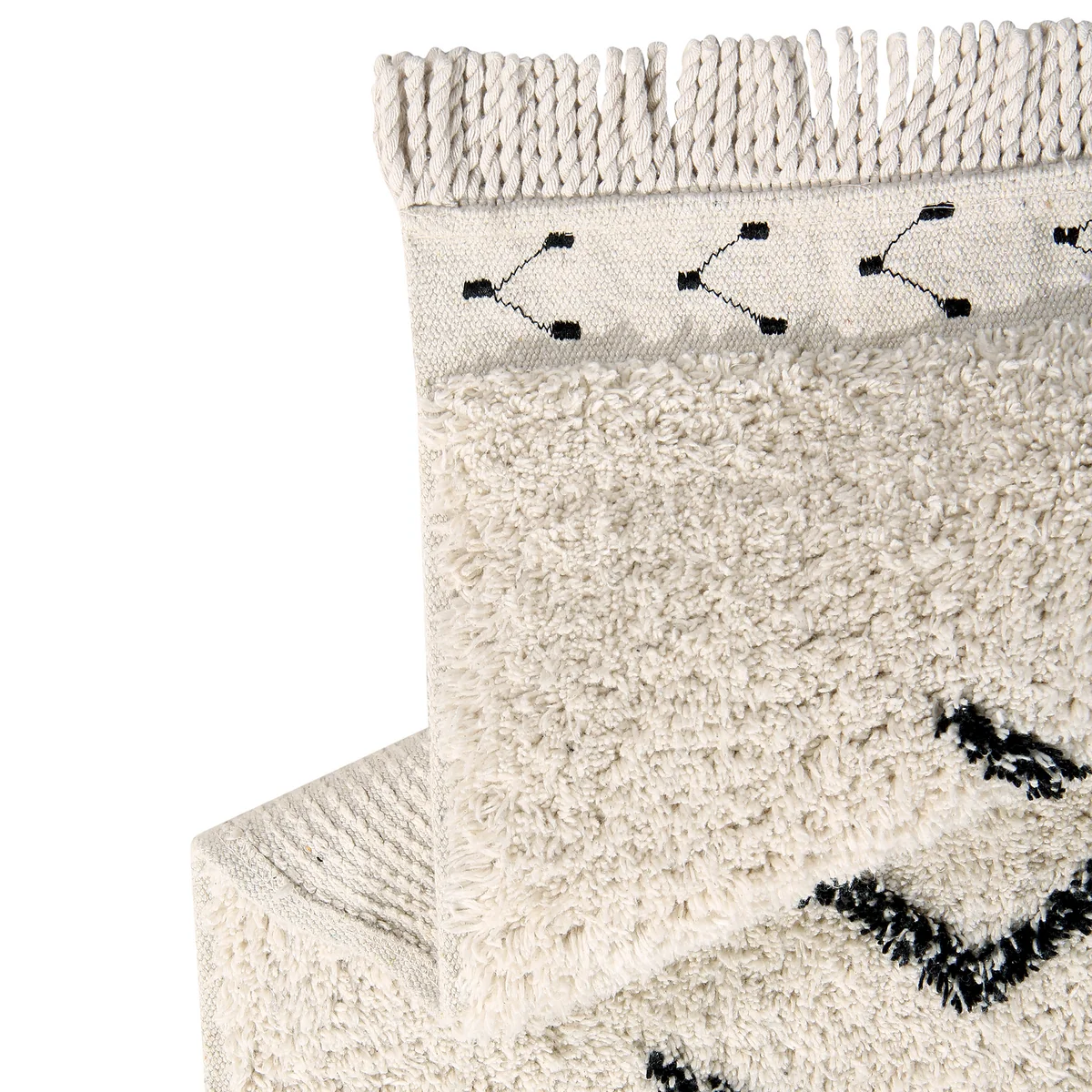 Der flexible Baumwollteppich ist leicht zu falten, lagern und waschen. Jedes Stück wird in Indien handgefertigt, weshalb es zu leichten Abweichungen der Unikate kommen kann.