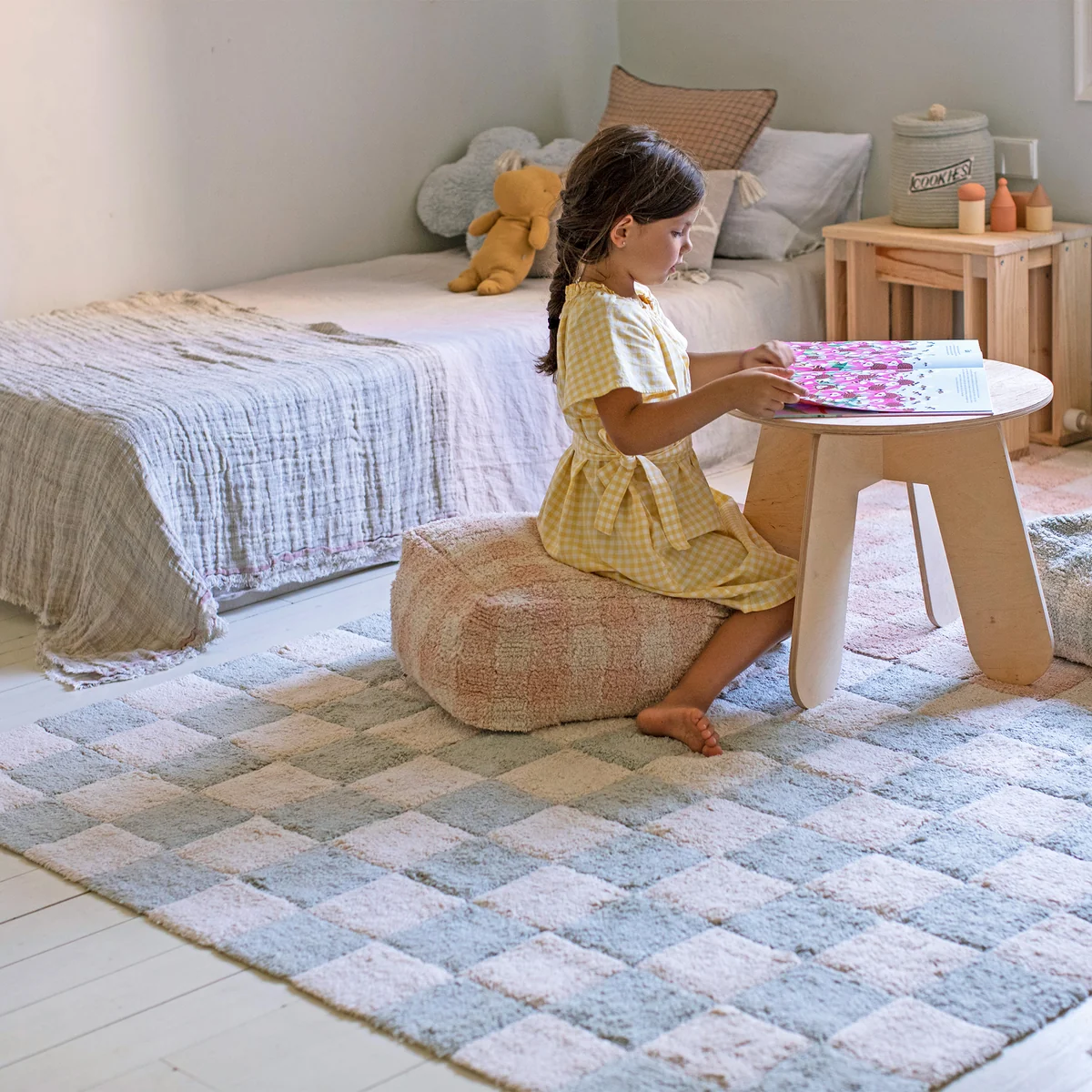 Waschbarer Teppich aus Baumwollgarn in Schachbrett-Design