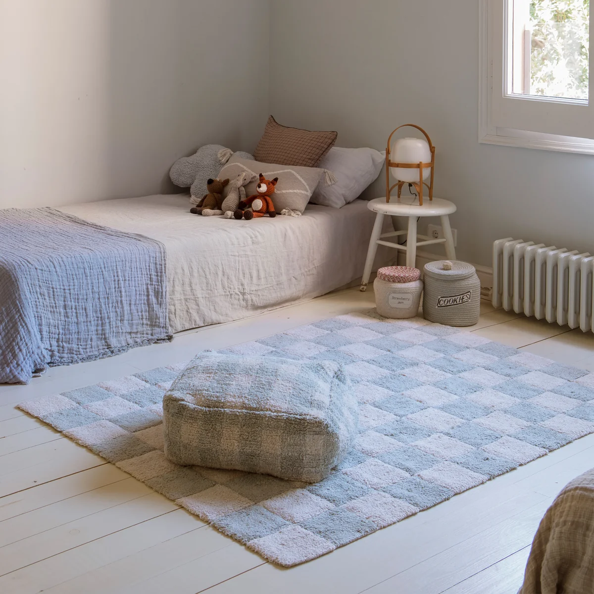 Der Kitchen Tiles Teppich aus dem Hause Lorena Canals begeistert mit seinem traditionellen Schachbrettmuster. Der Teppich erinnert an klassische, kontrastierende Fliesen, die jedem Raum einen mutigen Blickfang bieten. Kitchen Tiles wird aus einer RugCycled®-Basis mit natürlichem, ungefärbtem Baumwollgarn gefertigt.