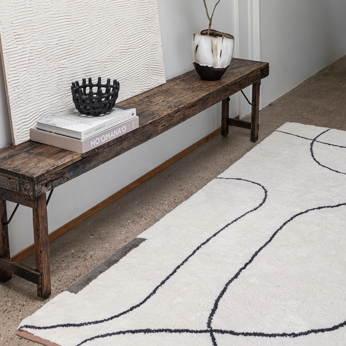 Der SHADOW Teppich von Mette Ditmer überzeugt mit einer harmonischen Kombination aus weichen Formen und dezentem, grafischem Design. Gefertigt aus 100 % OEKO-TEX® zertifizierter Baumwolle und mit einer rutschfesten Gummirückseite versehen, bleibt der Teppich zuverlässig an Ort und Stelle. Die schwere, getuftete Qualität sorgt für ein angenehmes Laufgefühl und macht ihn zur perfekten Wahl für gemütliche Rückzugsorte – ob unter dem Sessel, im Schlafzimmer oder in einer ruhigen Leseecke.