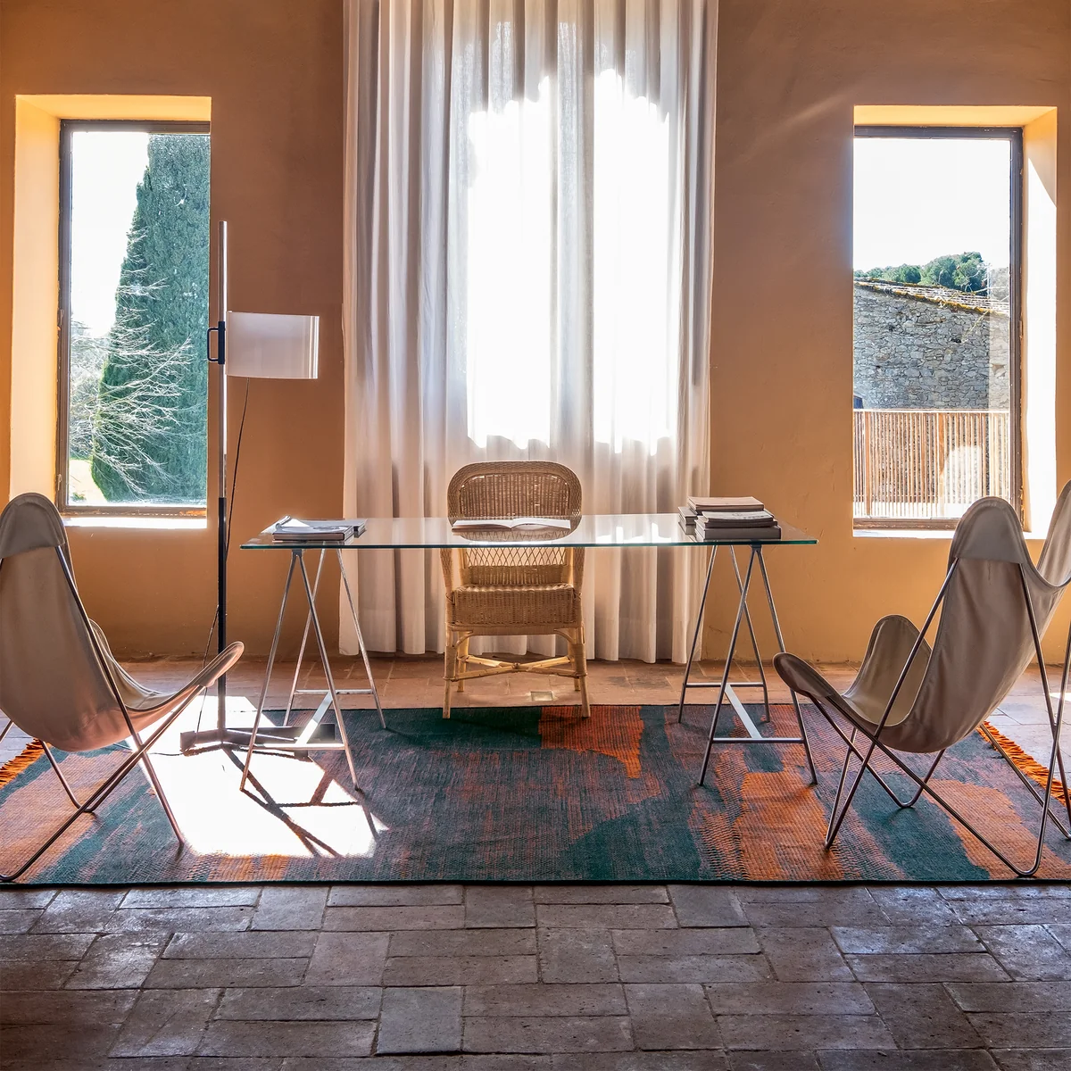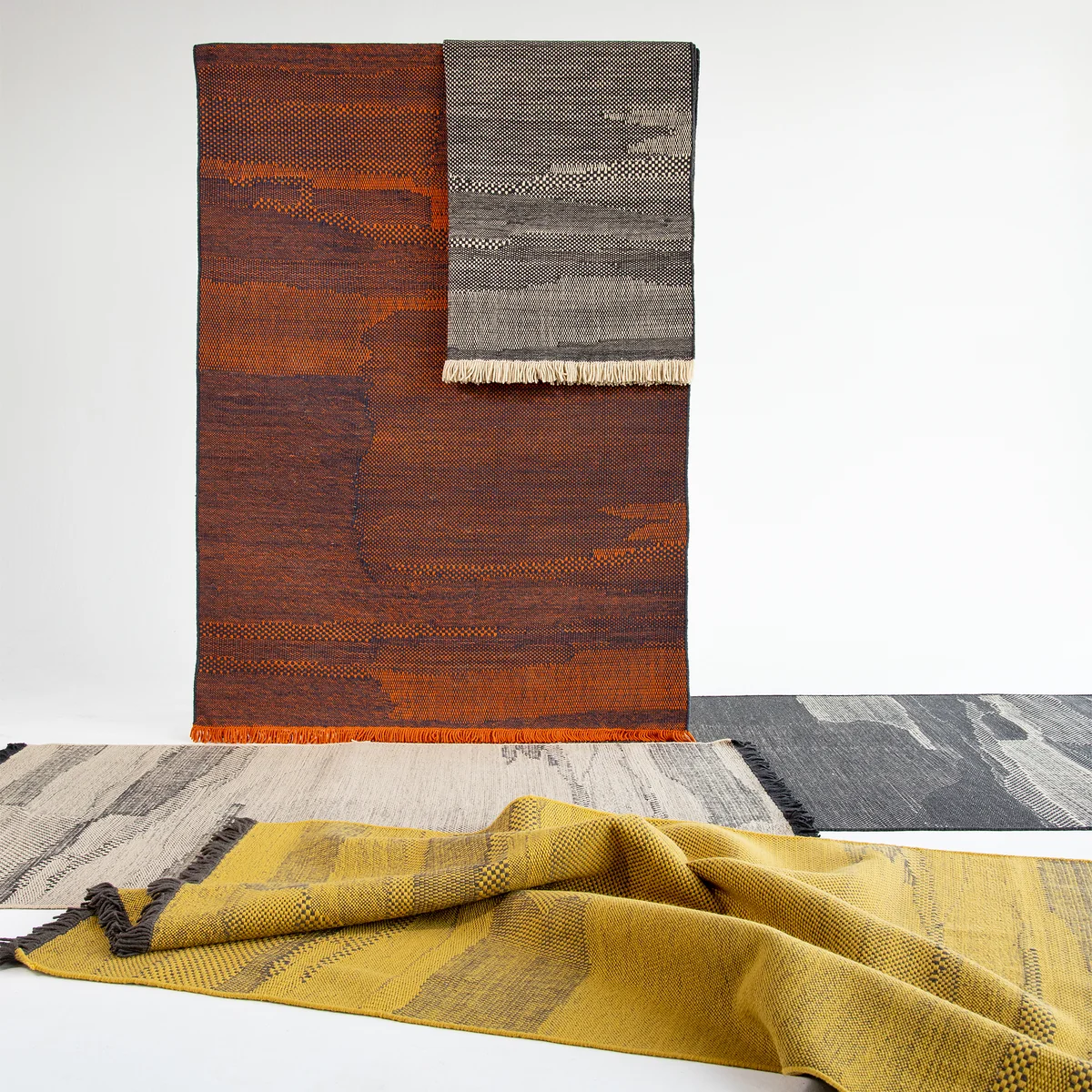 Der Wabisabi Wollteppich von nanimarquina. Die Wabisabi-Philosophie zelebriert die Vorstellung, dass wahre Schönheit nicht in Makellosigkeit liegt, sondern in der Akzeptanz von Unvollkommenheiten.