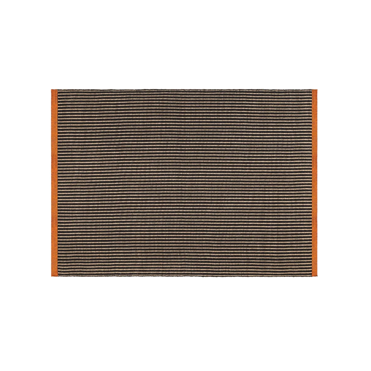 Der Line Teppich von Tom Dixon überzeugt durch sein markantes, beidseitig verwendbares Flachgewebe aus gemischtem Jutegarn. Das Design kombiniert schwarze Streifen mit einem kontrastierenden orangefarbenen Band, das dem Teppich einen modernen, grafischen Charakter verleiht. Durch seine strapazierfähige Struktur und unterschiedlichen Größen eignet sich der Line Teppich gleichermaßen für kleine wie große Räume und setzt überall einen klaren, gestalterischen Akzent.