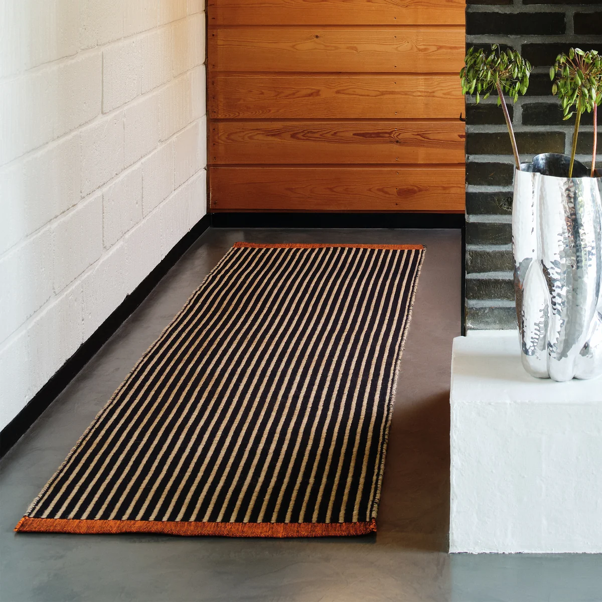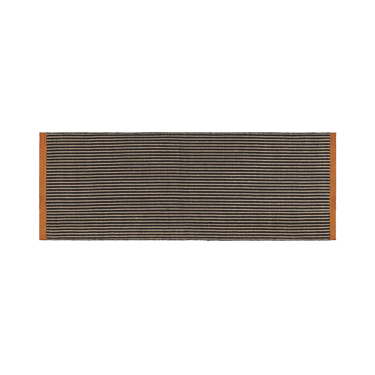 Der Line Teppichläufer kombiniert funktionales Design mit handwerklicher Präzision. Gefertigt aus einer natürlichen Jutemischung in beidseitig nutzbarer Flachwebtechnik, überzeugt der Teppich durch seine markante Linienführung. Das orangefarbene Webband setzt einen gezielten Farbakzent, während die schwarzen Streifen dem Design eine dynamische Struktur verleihen. In drei verschiedenen Größen erhältlich, fügt sich der Teppich flexibel in unterschiedliche Raumkonzepte ein – vom dezenten Akzent bis zum ausdrucksstarken Mittelpunkt.