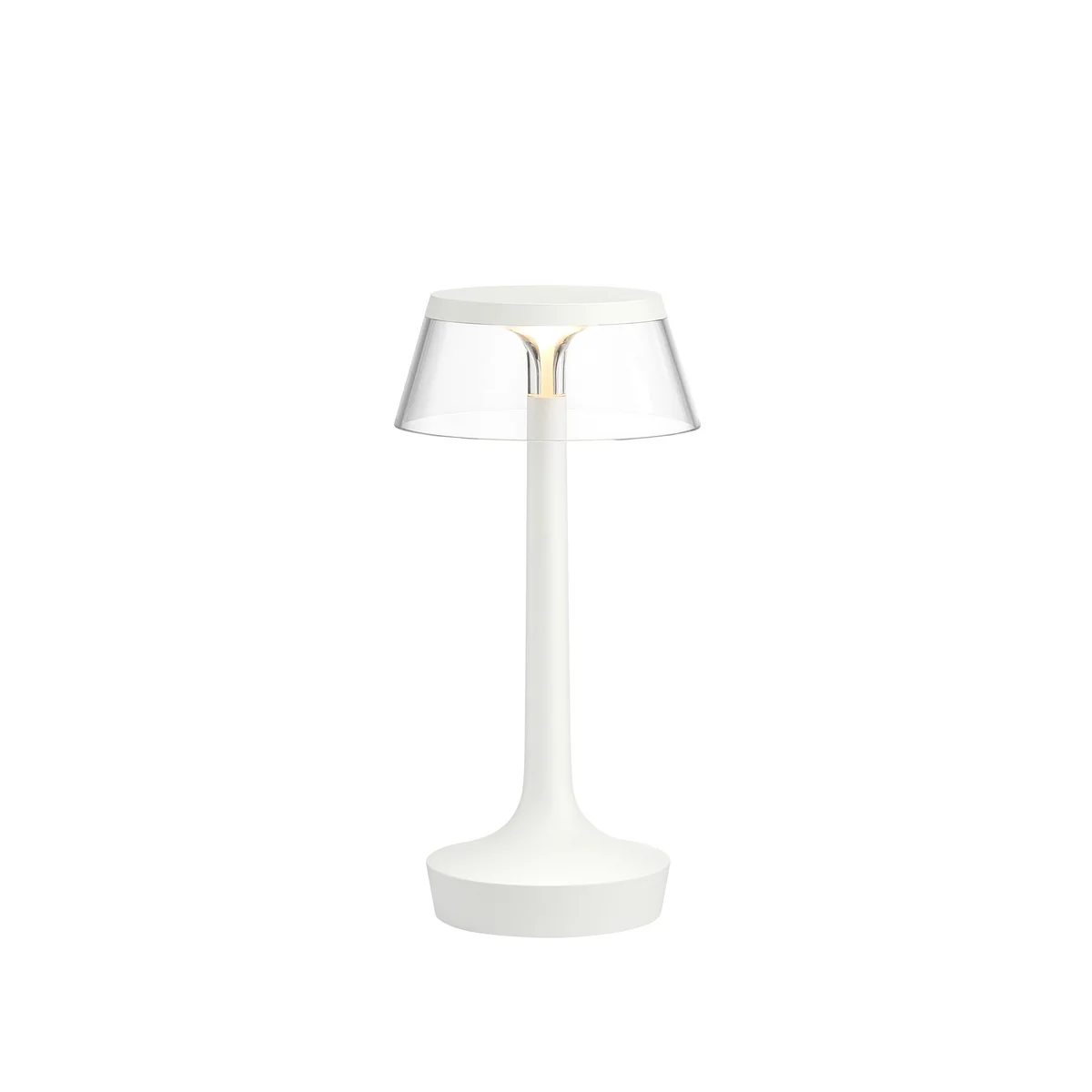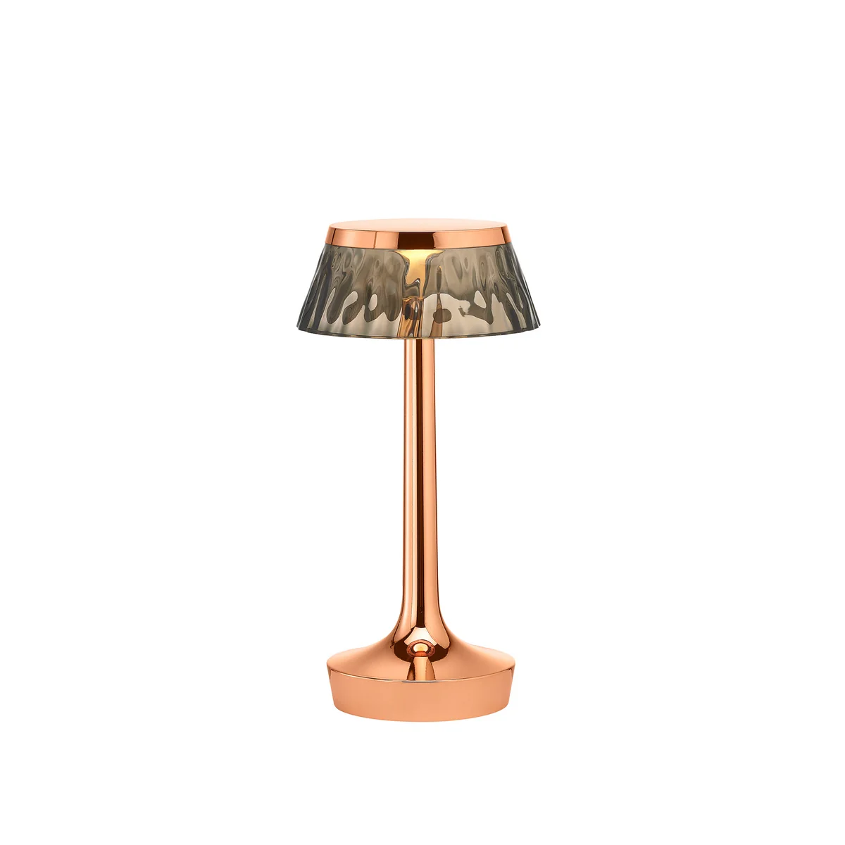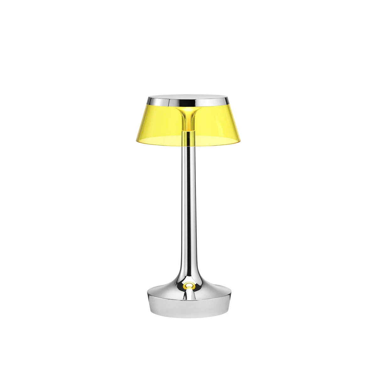 Die hier präsentierte Krone ist eine Ergänzung zu der Bon Jour Unplugged Tischleuchte von Flos. Die Leuchte wurde vom französischen Stardesigner Philippe Starck entworfen und besticht durch ihre Konfigurierbarkeit. Während die Basis -samt Abdeckung- in den Farben weis, chrom, chrom matt und kupfer angeboten wird, lassen sich mit den frei wählbaren Kronen zusätzlich farbliche Akzente setzen. So kann, passend zur Einrichtung und dem persönlichen Geschmack, eine Tischleuchte kreiert werden, die entweder schlicht oder auffällig den Raum bereichert.