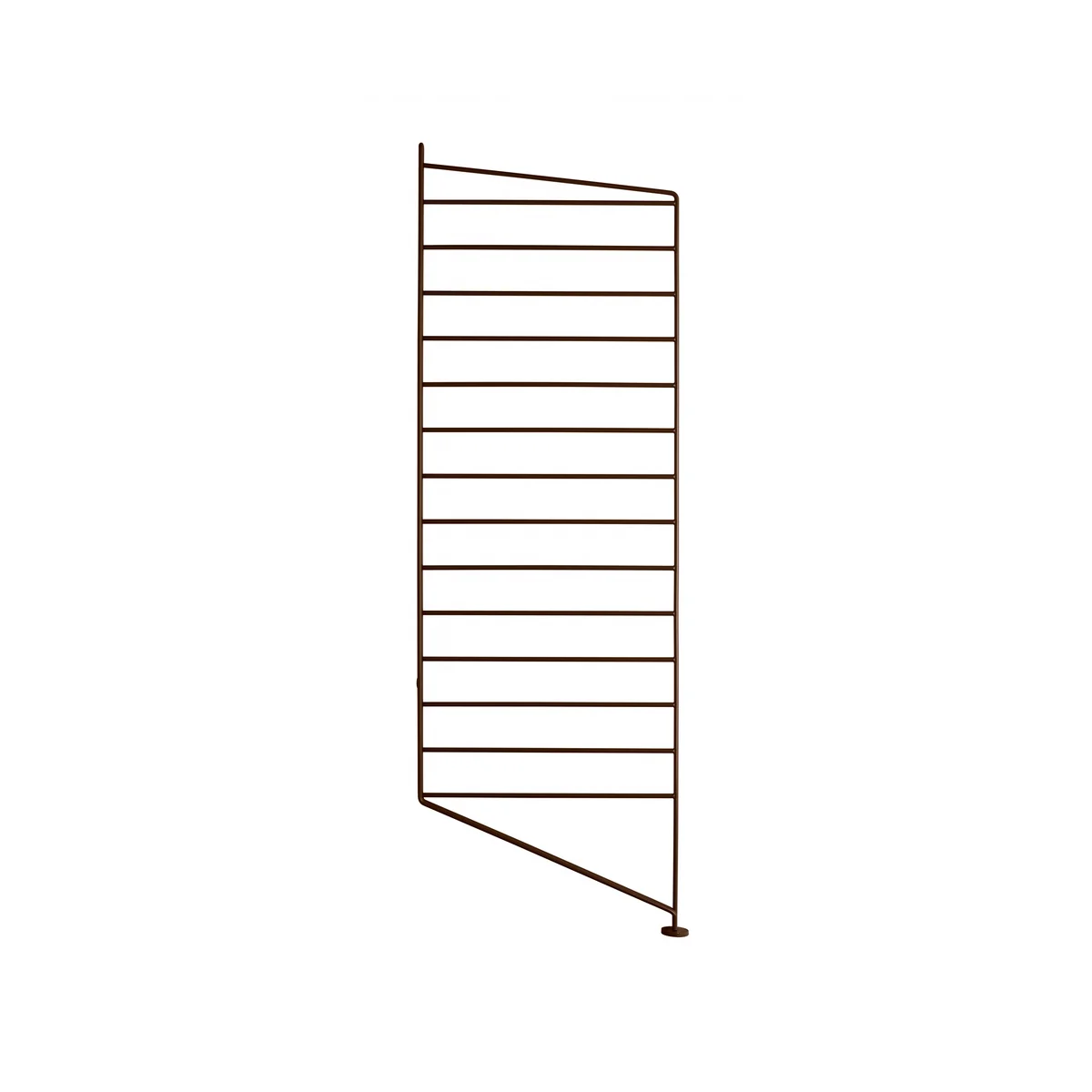 Alle Bodenelemente des String Regalsystems Walnuss gibt es auch in anderen Furnierausführungen wie Birke natur oder Eiche natur, sowie MDF schwarz oder MDF weiß lackiert. Die Seitenelemente aus Stahl sind in weiß, schwarz oder grau erhältlich. Um Durchbiegung zu vermeiden, wird eine gleichmäßig verteilte Belastung von max. 15 kg pro 78 cm breitem Regalboden und 20 kg pro 58 cm breitem Regalboden empfohlen.