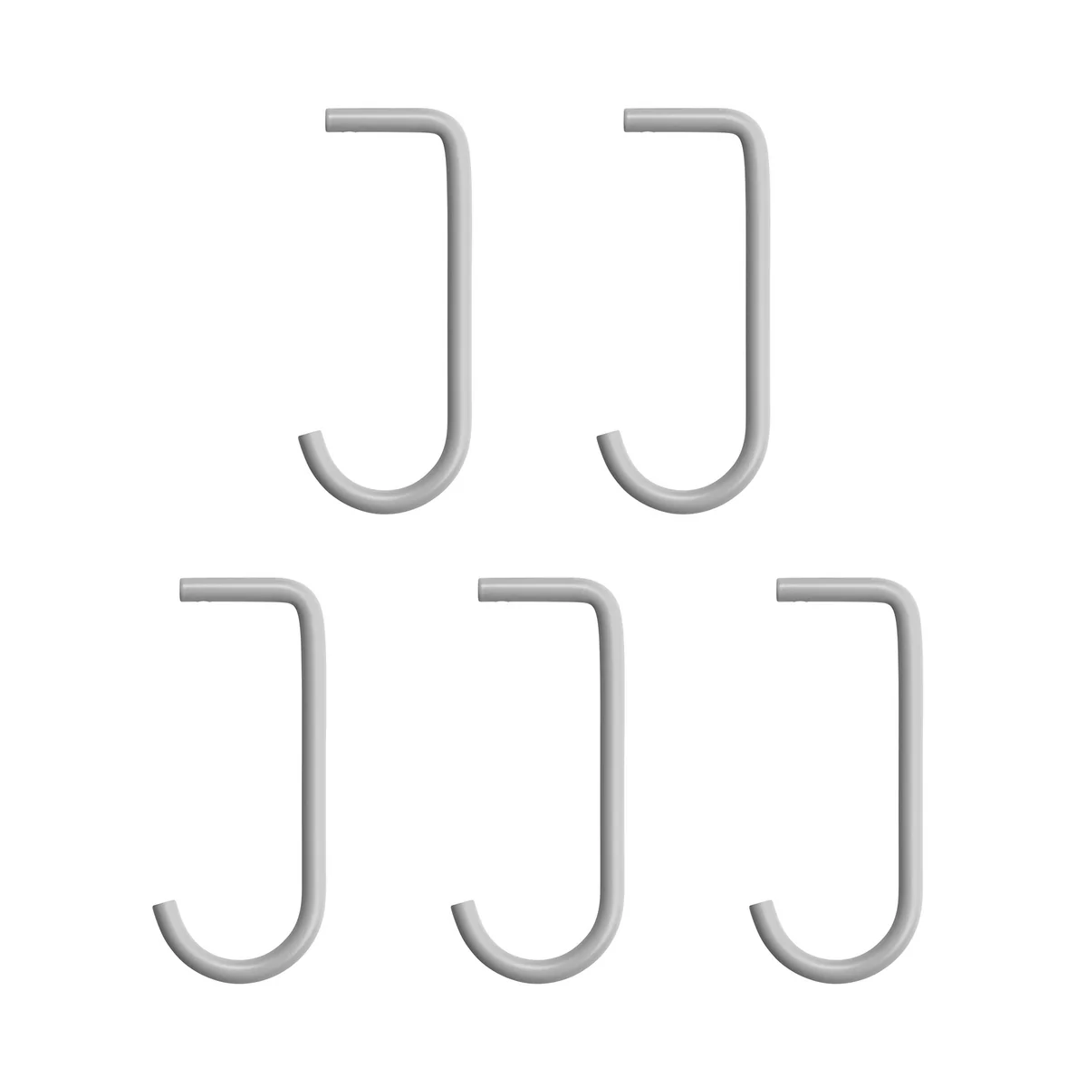 Die Haken werden einfach in das perforierte Metall der Böden eingehängt und können vom Handtuch bis zum Topf so gut wie alles halten. Sie werden aus Metall hergestellt, sind in verschiedenen Farben erhältlich und kommen im 5er-Set. Auch als praktische S-Haken verfügbar.