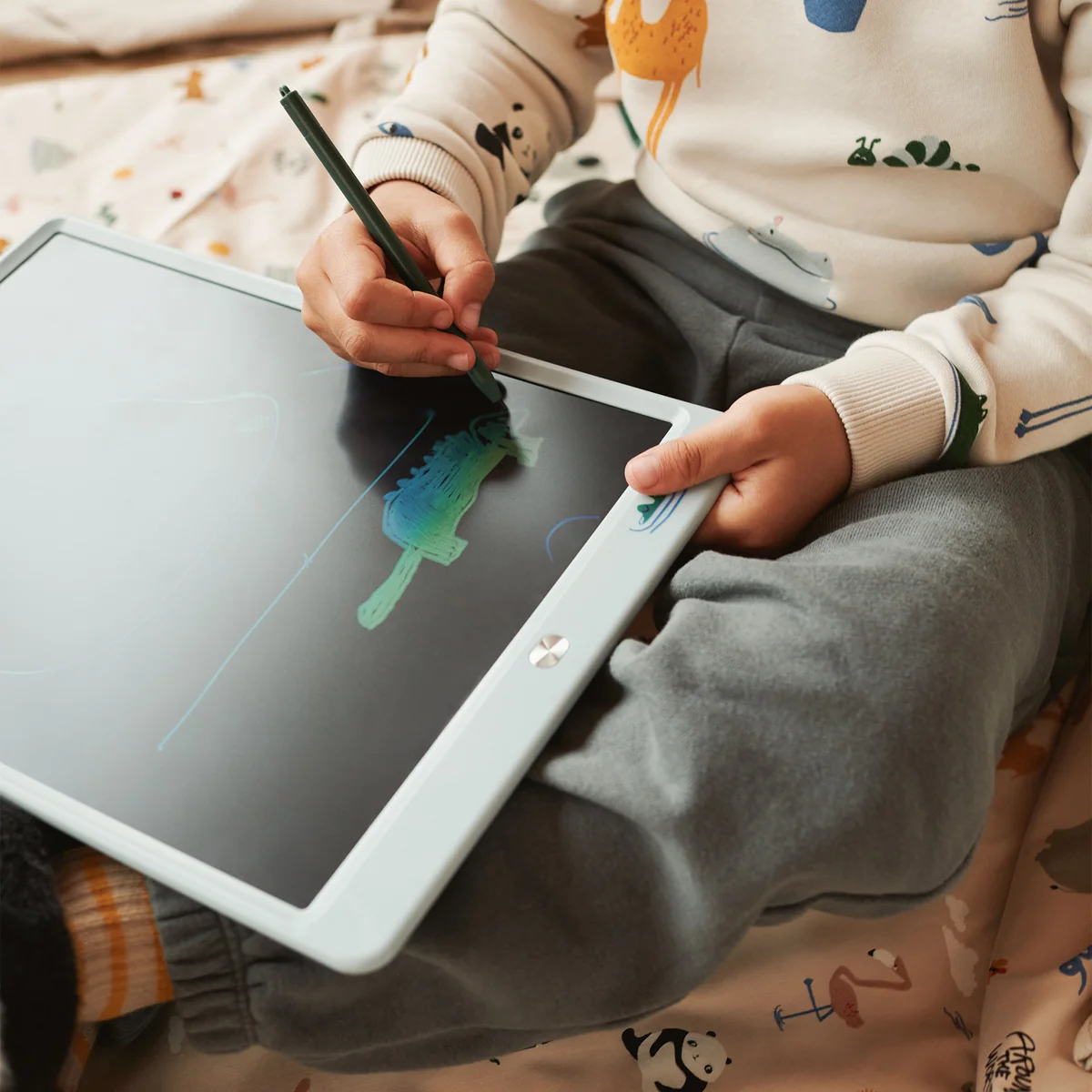 Mit der Zora LCD-Zeichentafel entdecken Kinder ihre Kreativität ganz neu – egal, ob zu Hause, unterwegs oder im Urlaub. Die druckempfindliche Oberfläche reagiert auf jeden Strich und erzeugt Linien unterschiedlicher Stärke – ganz ohne Farbe, Papier oder Chaos. Mit nur einem Knopfdruck lässt sich das Kunstwerk löschen oder über den Schieberegler sichern, sodass kleine Künstler immer wieder neu gestalten können. Eine umweltfreundliche, wiederverwendbare Alternative zu Stift und Papier, die Fantasie und Feinmotorik gleichermaßen fördert.