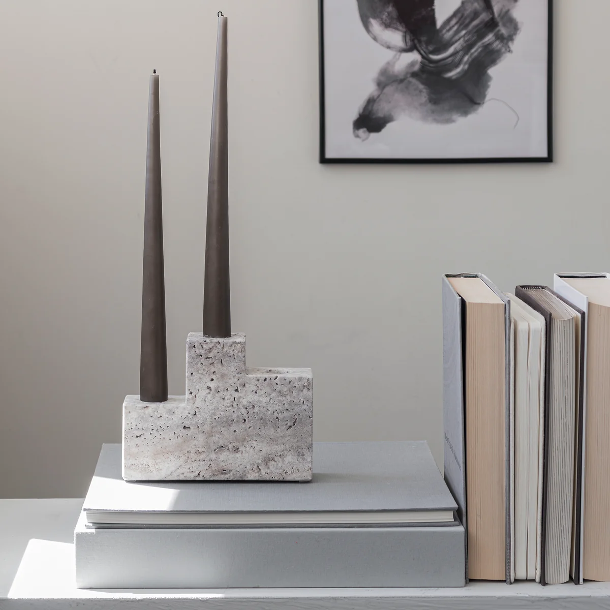 Der Step Kerzenhalter von Mette Ditmer beeindruckt durch seine klare, geometrische Form und präzise Linienführung. Inspiriert von der schlichten Schönheit skandinavischen Designs, zeigt der Kerzenhalter ein raffiniertes, stufenförmiges Layout, das einen subtilen, aber markanten visuellen Effekt erzeugt. Dieses Design verleiht dem Kerzenhalter eine zeitlose Eleganz, die sich nahtlos in verschiedene Einrichtungsstile integrieren lässt.
